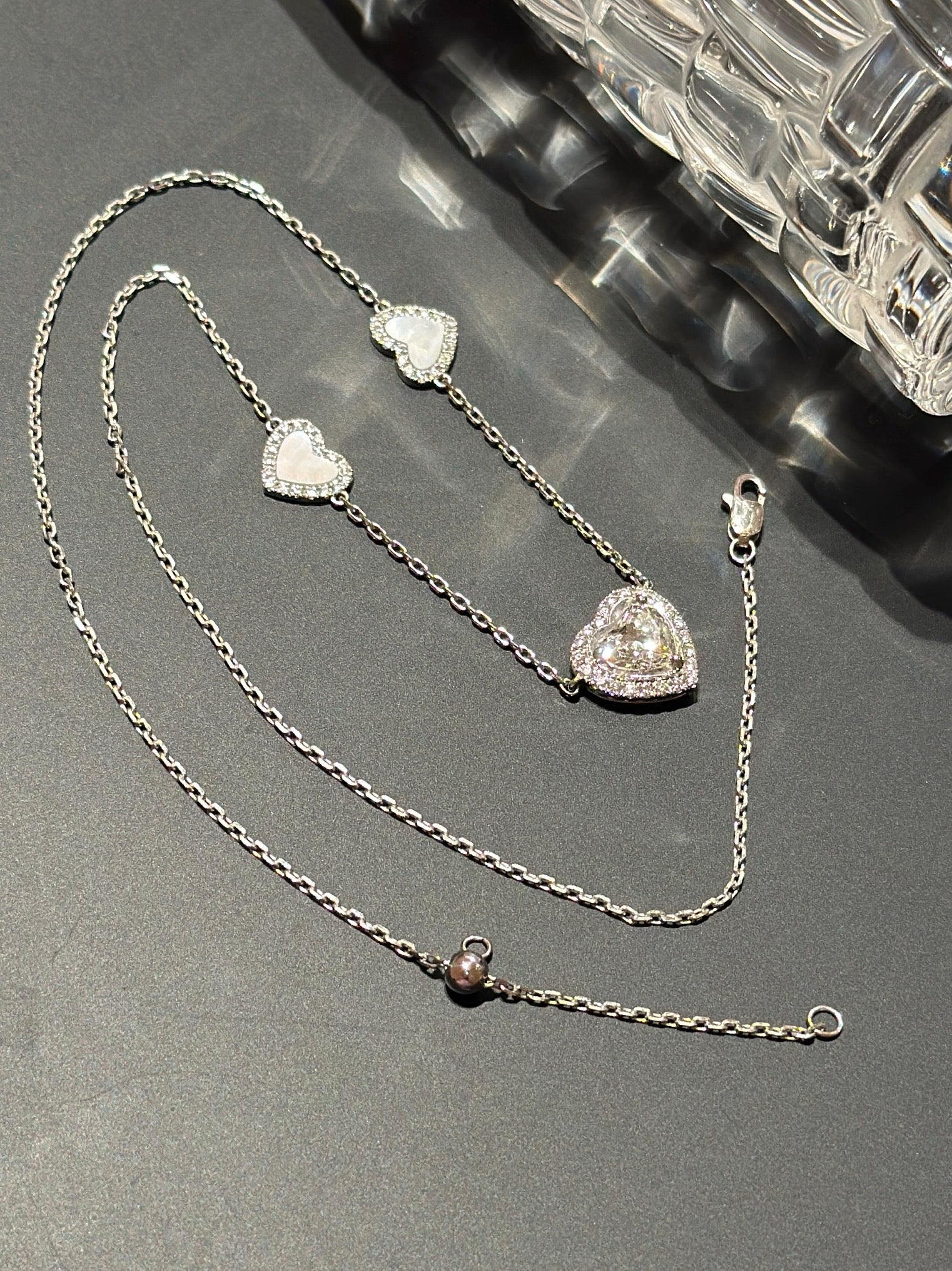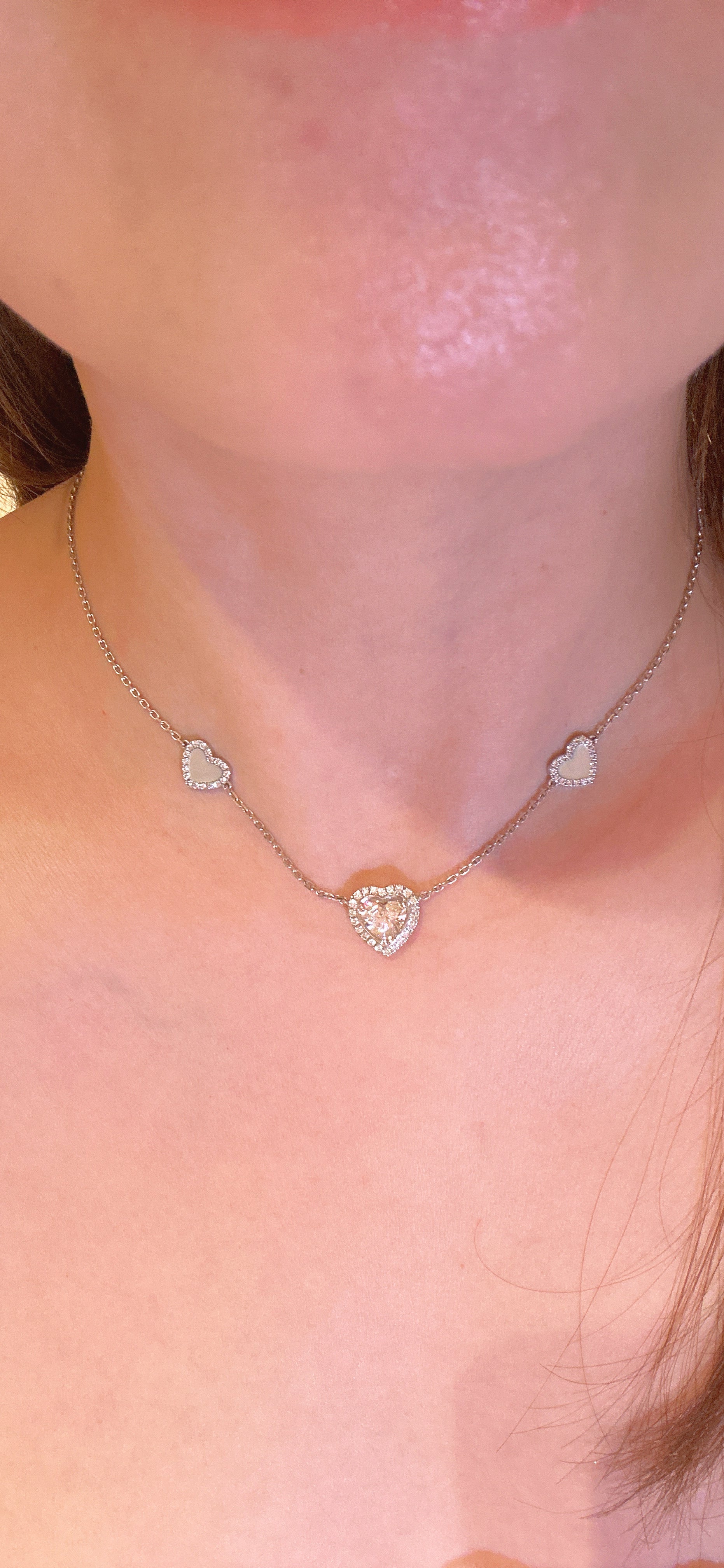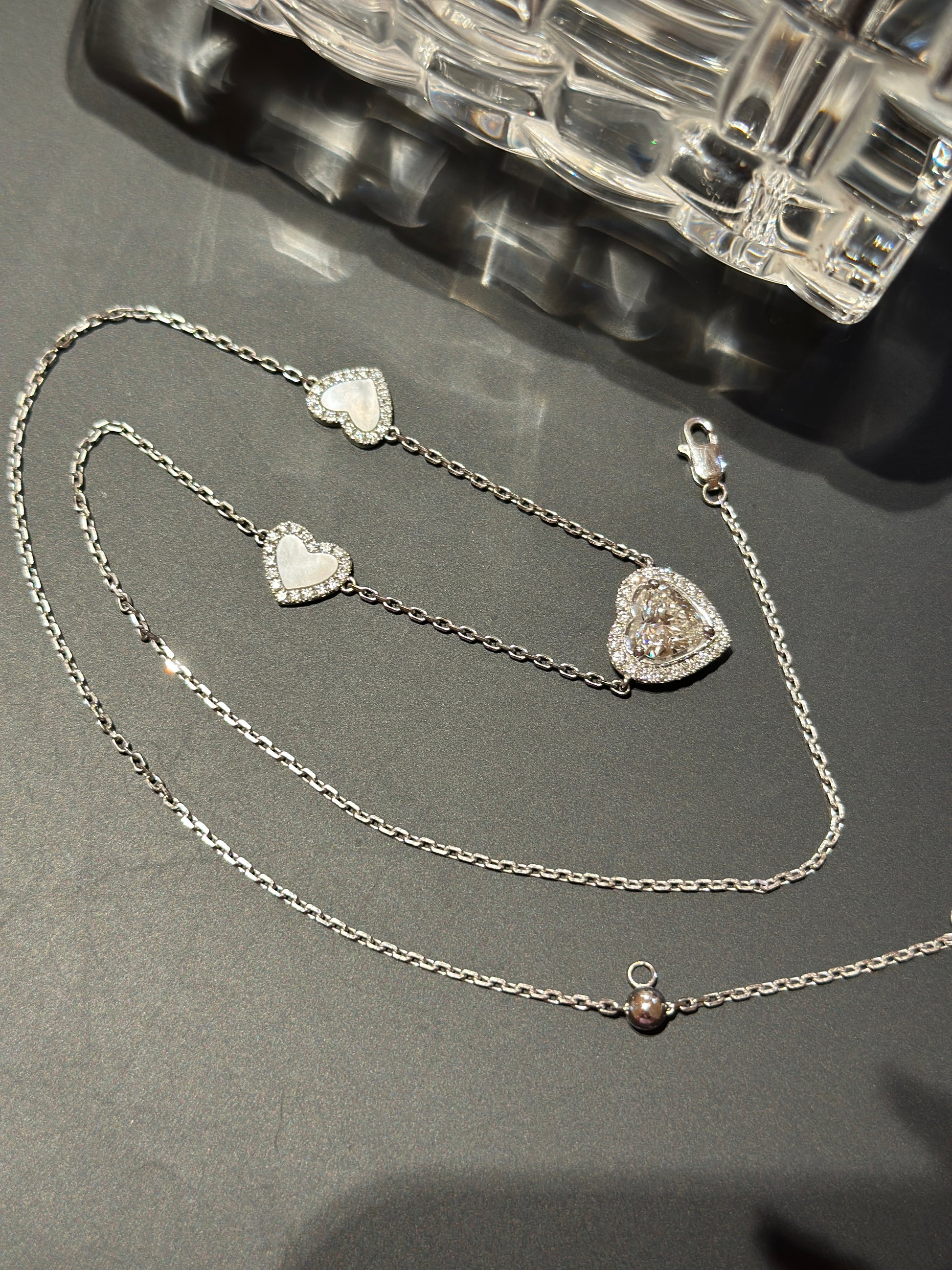 Heart shape of lab grown diamond (1.5 CARATS IGI CERTIFICATE,E COLOUR,VS1)with natural mother of pearl ,Platinum gold with lab grown diamonds,Adjustable length necklace chain