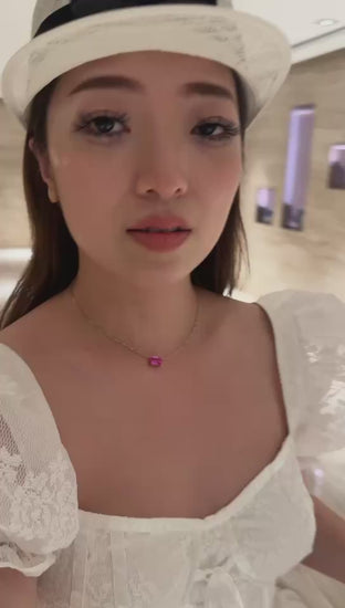 Lab grown pink sapphire princess necklace(18K GOLD)